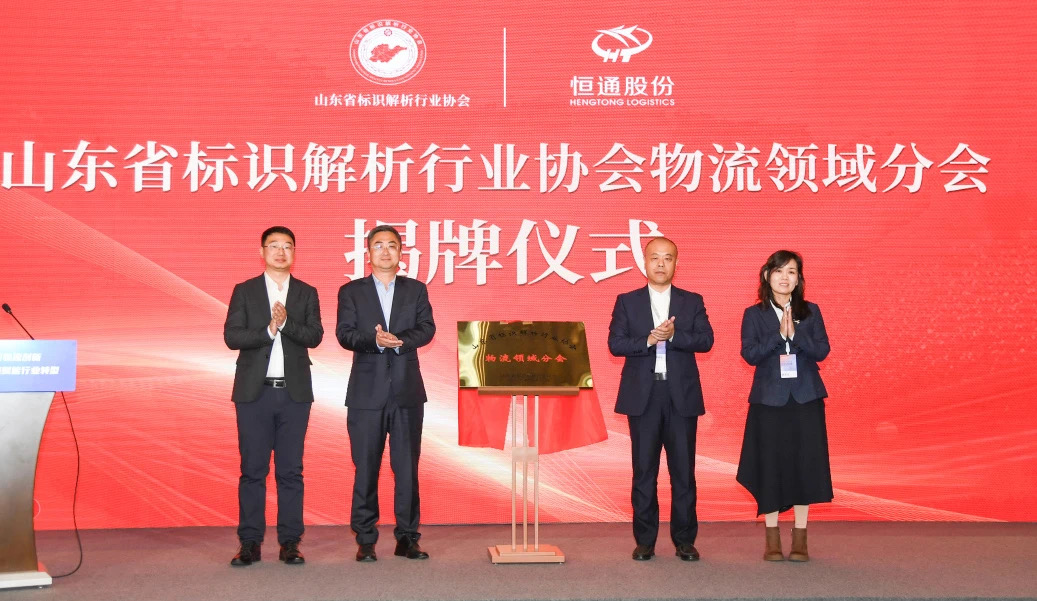 與會(huì)領(lǐng)導(dǎo)共同為山東省標(biāo)識(shí)解析行業(yè)協(xié)會(huì)物流領(lǐng)域分會(huì)揭牌。