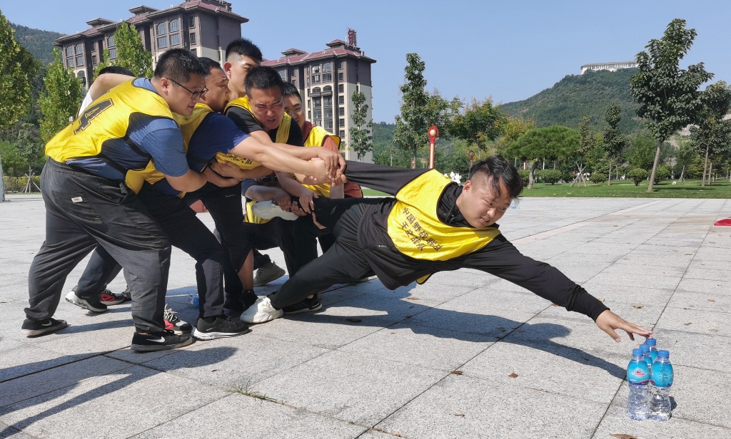 活動(dòng)中,在教練的帶領(lǐng)下,全體隊(duì)員分五組建團(tuán),完成了選隊(duì)長、起隊(duì)名、定口號(hào)以及團(tuán)隊(duì)風(fēng)采展示等多項(xiàng)任務(wù)。大家在歡樂又緊張的氛圍中開始了“激情150”、“群龍取水”、“團(tuán)隊(duì)圣塔”一系列拓展項(xiàng)目的比拼。一個(gè)個(gè)有趣生動(dòng)的拓展項(xiàng)目,不僅激發(fā)了員工個(gè)人潛能,也充分發(fā)揮了團(tuán)隊(duì)協(xié)作精神,出色地完成了各項(xiàng)任務(wù),提升了團(tuán)隊(duì)的向心力和戰(zhàn)斗力,達(dá)到了“磨煉意志、熔煉團(tuán)隊(duì)、聚力奮戰(zhàn)第四季度”的良好效果和預(yù)期目的,得到大家一致好評(píng)。